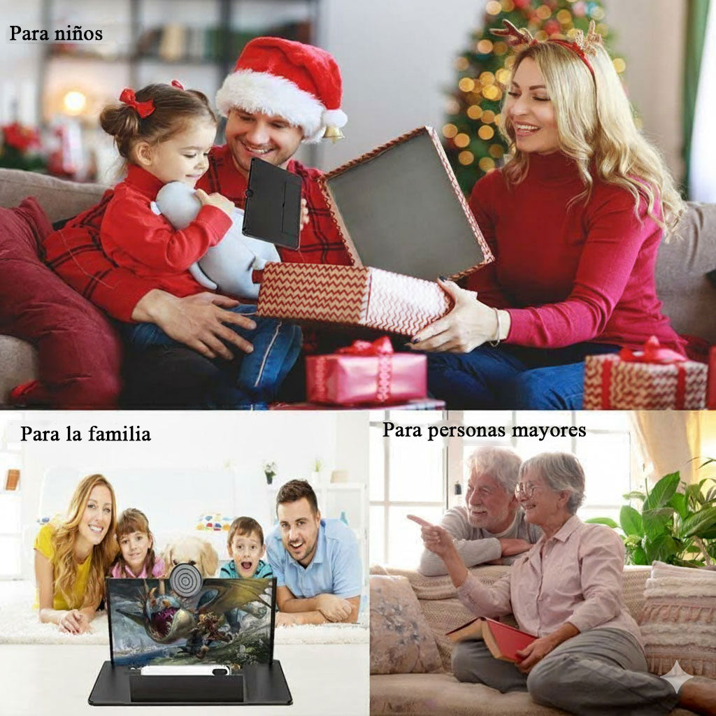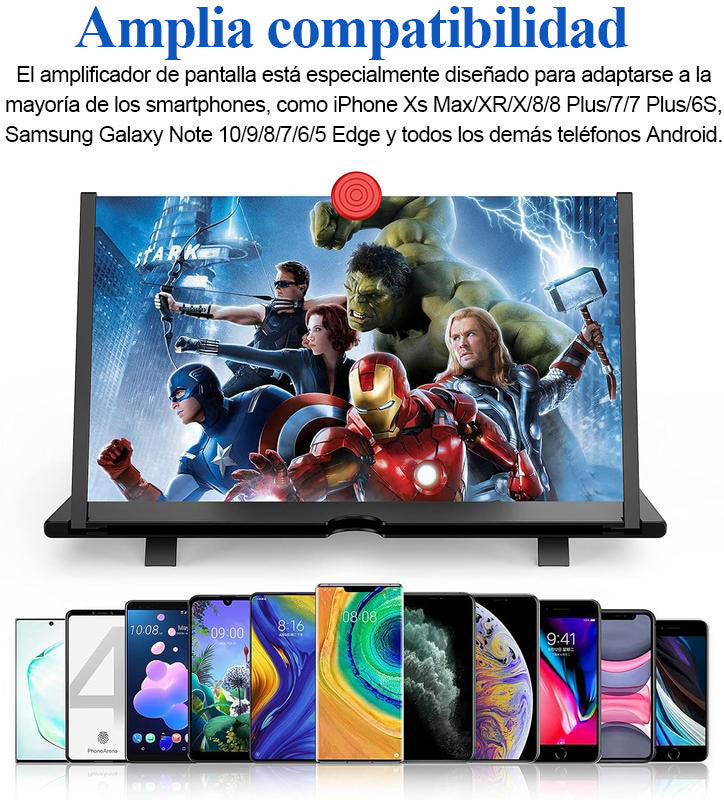 Equipado con una lente óptica de alta definición que amplía la pantalla de tu teléfono hasta cuatro veces, creando al instante un área de visualización más grande y cómoda para películas y juegos.
