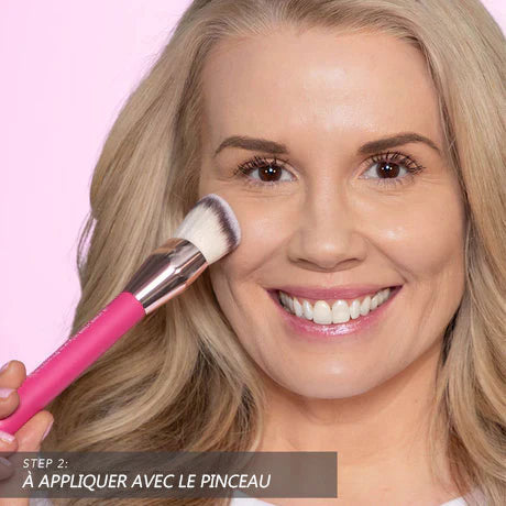 Lorsque vous appliquez le fond de teint, il glisse parfaitement, reste en place toute la journée et offre un fini naturel, sans effet « masque ».
